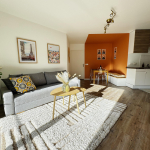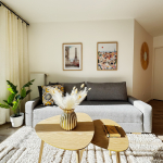 Le salon lumineux ☀️ est parfait pour se détendre après une journée de visite ou de travail. Profitez d'un canapé confortable, d'une smart TV et d'une connexion Wi-Fi haut débit pour vos moments de loisirs.